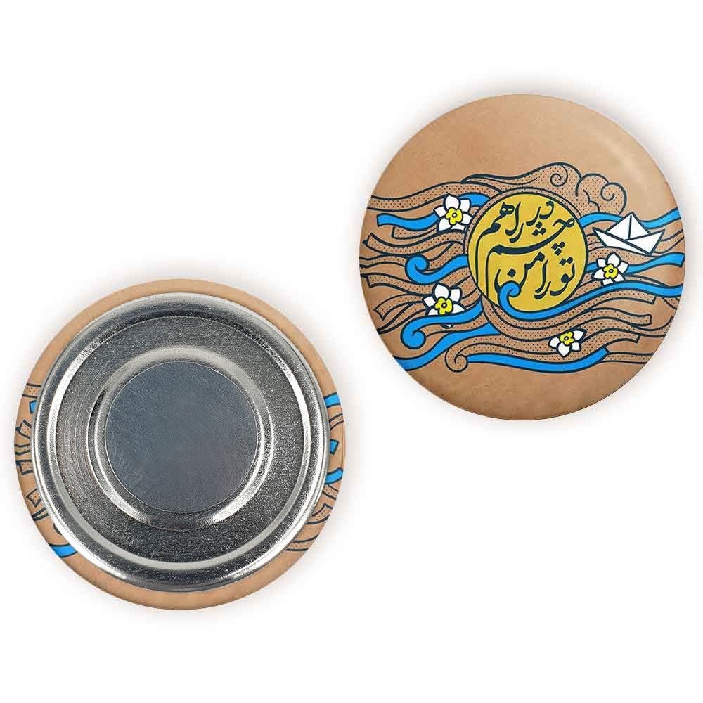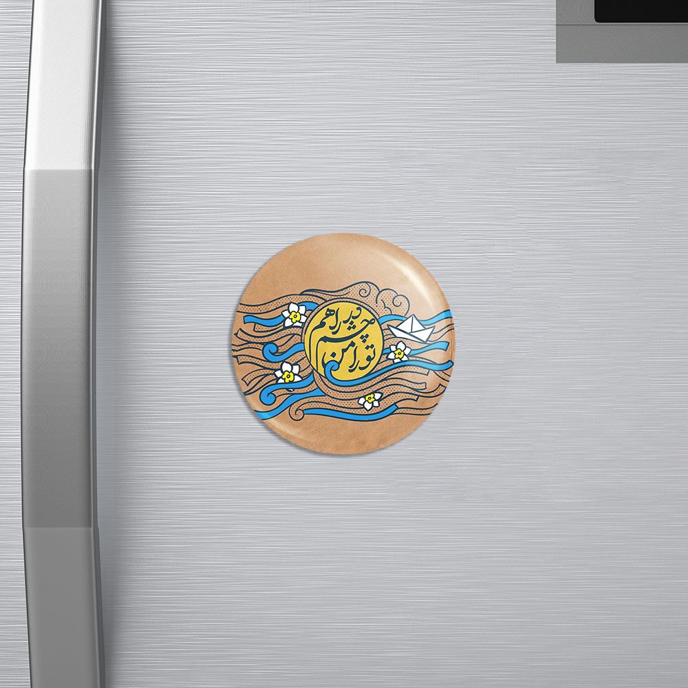 مگنت نیمه شعبان خندالو با روکش سلفون مات مخملی ضدخش و قطعه پشتی فلزی تولید شده است که آهنربای اتمی بکار برده شده در محصول، بصورت مخفی تعبیه شده ودیده نمی شود. ضمن اینکه گیرایی بسیار بالایی داشته و به هیچ عنوان از روی یخچال نمی افتد.