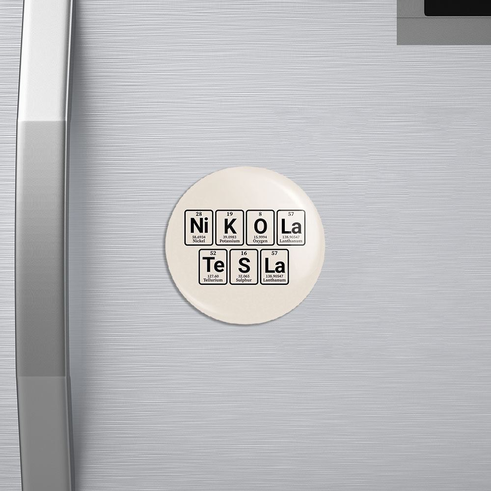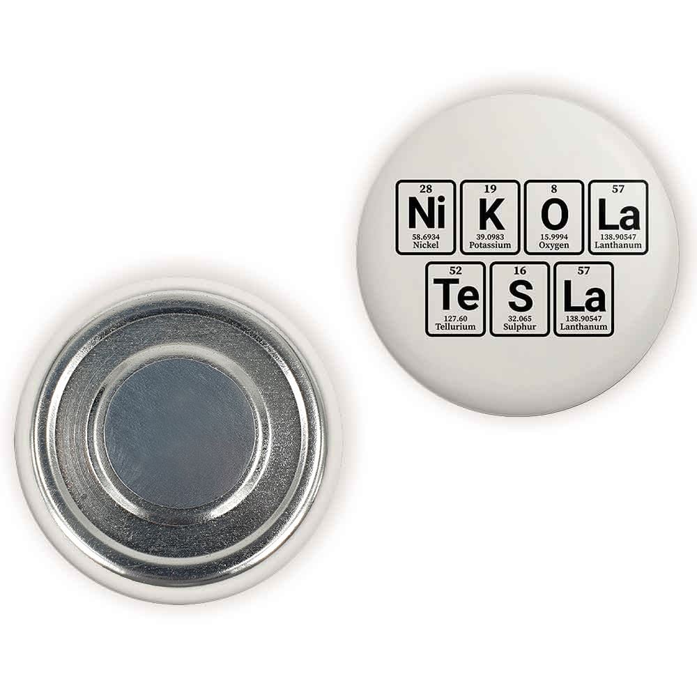 مگنت نیکولاس تسلا Tesla خندالو با روکش سلفون مات مخملی ضدخش و قطعه پشتی فلزی تولید شده است که آهنربای اتمی بکار برده شده در محصول، بصورت مخفی تعبیه شده ودیده نمی شود. ضمن اینکه گیرایی بسیار بالایی داشته و به هیچ عنوان از روی یخچال نمی افتد.