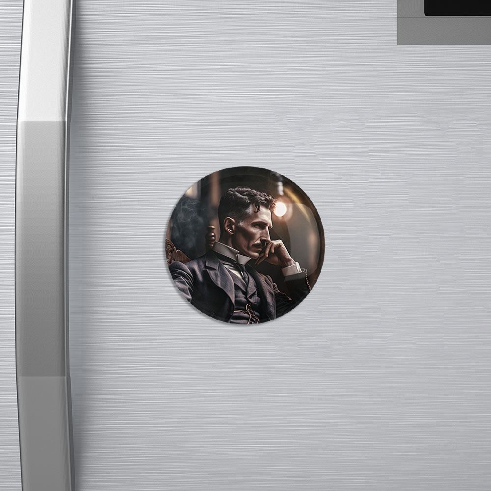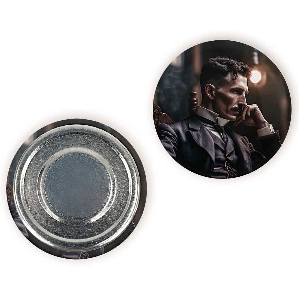 مگنت نیکولاس تسلا Tesla خندالو با روکش سلفون مات مخملی ضدخش و قطعه پشتی فلزی تولید شده است که آهنربای اتمی بکار برده شده در محصول، بصورت مخفی تعبیه شده ودیده نمی شود. ضمن اینکه گیرایی بسیار بالایی داشته و به هیچ عنوان از روی یخچال نمی افتد.