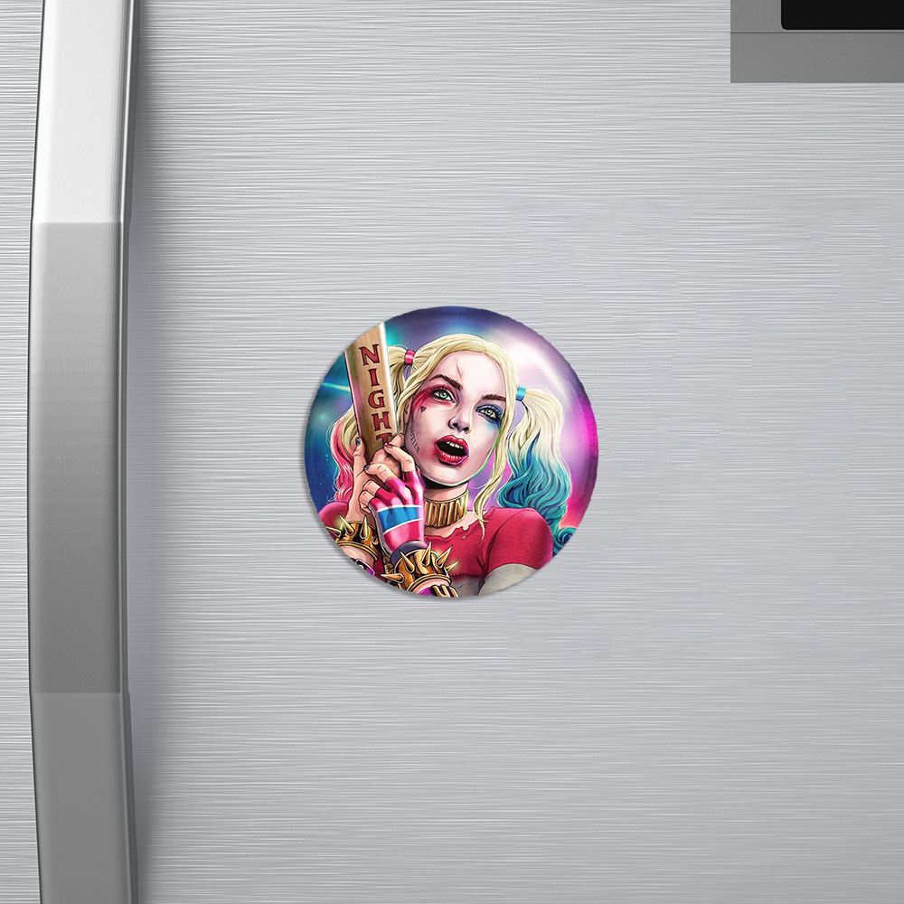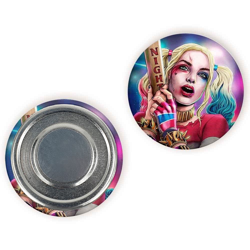 مگنت هارلی کویین Harley Quinn خندالو با روکش سلفون مات مخملی ضدخش و قطعه پشتی فلزی تولید شده است که آهنربای اتمی بکار برده شده در محصول، بصورت مخفی تعبیه شده ودیده نمی شود. ضمن اینکه گیرایی بسیار بالایی داشته و به هیچ عنوان از روی یخچال نمی افتد.