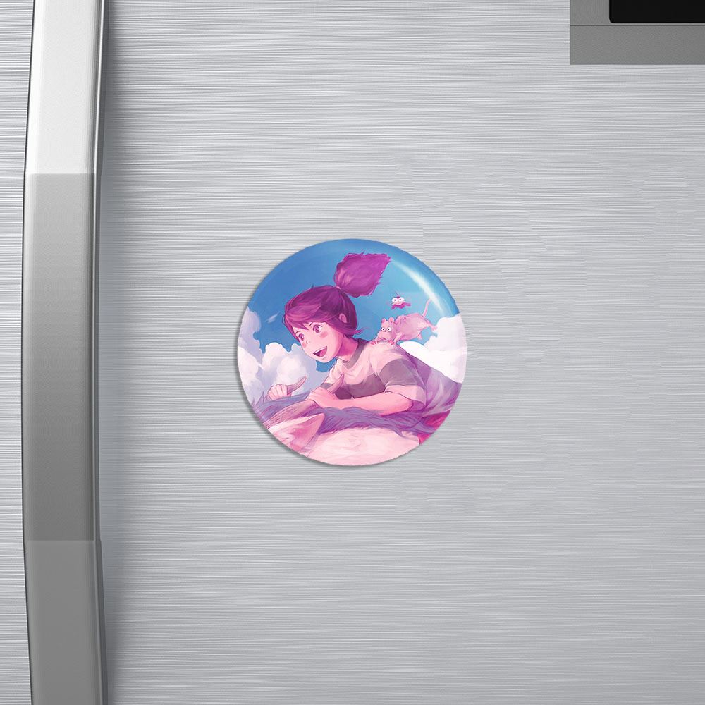 مگنت هاکو و چیهیرو انیمه شهر اشباح Spirited Away خندالو با روکش سلفون مات مخملی ضدخش و قطعه پشتی فلزی تولید شده است که آهنربای اتمی بکار برده شده در محصول، بصورت مخفی تعبیه شده ودیده نمی شود. ضمن اینکه گیرایی بسیار بالایی داشته و به هیچ عنوان از روی یخچال نمی افتد.