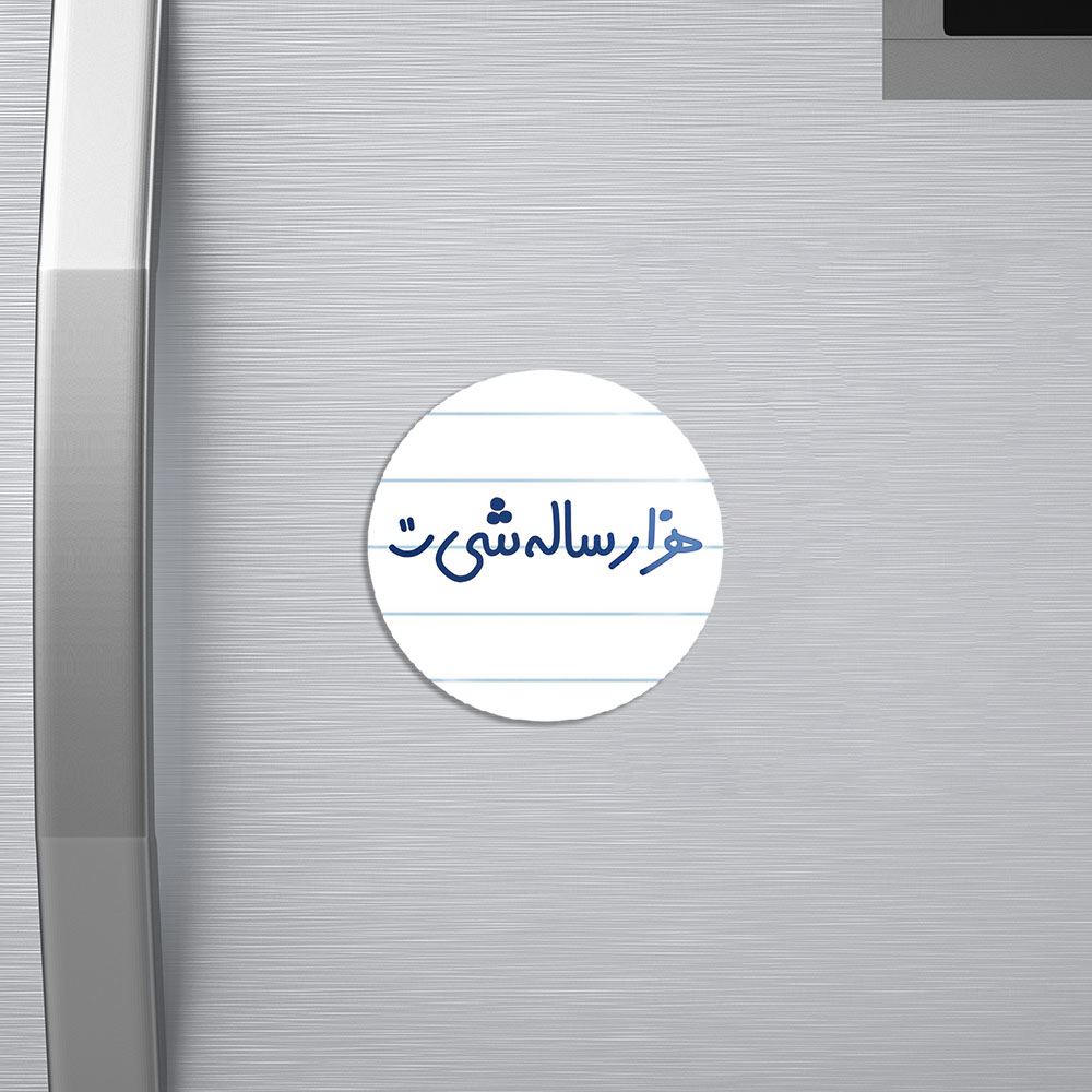مگنت هزار ساله شی 🙂 خندالو با روکش سلفون مات مخملی ضدخش و قطعه پشتی فلزی تولید شده است که آهنربای اتمی بکار برده شده در محصول، بصورت مخفی تعبیه شده ودیده نمی شود. ضمن اینکه گیرایی بسیار بالایی داشته و به هیچ عنوان از روی یخچال نمی افتد.