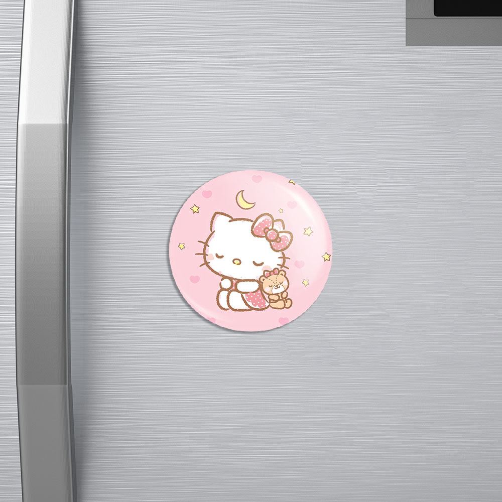 مگنت هلو کیتی Hello Kitty خندالو با روکش سلفون مات مخملی ضدخش و قطعه پشتی فلزی تولید شده است که آهنربای اتمی بکار برده شده در محصول، بصورت مخفی تعبیه شده ودیده نمی شود. ضمن اینکه گیرایی بسیار بالایی داشته و به هیچ عنوان از روی یخچال نمی افتد.