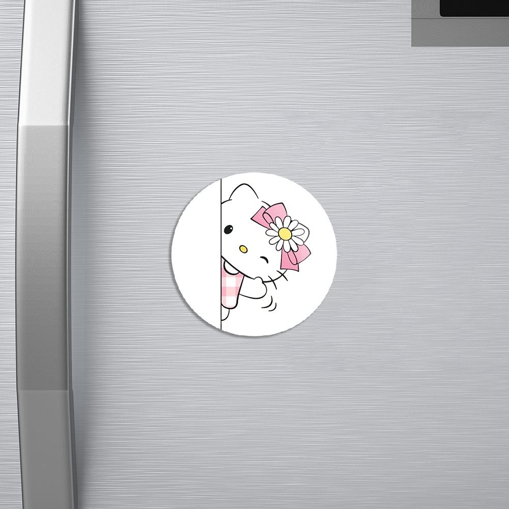 مگنت هلو کیتی Hello Kitty خندالو با روکش سلفون مات مخملی ضدخش و قطعه پشتی فلزی تولید شده است که آهنربای اتمی بکار برده شده در محصول، بصورت مخفی تعبیه شده ودیده نمی شود. ضمن اینکه گیرایی بسیار بالایی داشته و به هیچ عنوان از روی یخچال نمی افتد.