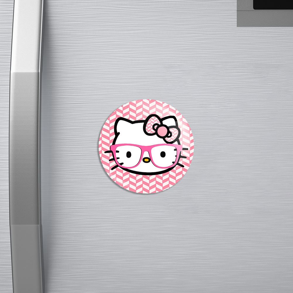 مگنت هلو کیتی Hello Kitty خندالو با روکش سلفون مات مخملی ضدخش و قطعه پشتی فلزی تولید شده است که آهنربای اتمی بکار برده شده در محصول، بصورت مخفی تعبیه شده ودیده نمی شود. ضمن اینکه گیرایی بسیار بالایی داشته و به هیچ عنوان از روی یخچال نمی افتد.