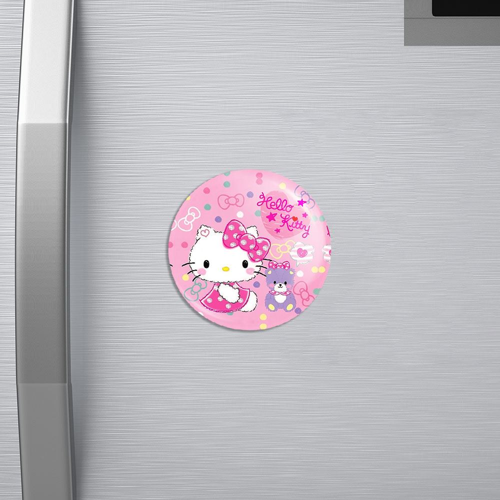 مگنت هلو کیتی Hello Kitty خندالو با روکش سلفون مات مخملی ضدخش و قطعه پشتی فلزی تولید شده است که آهنربای اتمی بکار برده شده در محصول، بصورت مخفی تعبیه شده ودیده نمی شود. ضمن اینکه گیرایی بسیار بالایی داشته و به هیچ عنوان از روی یخچال نمی افتد.
