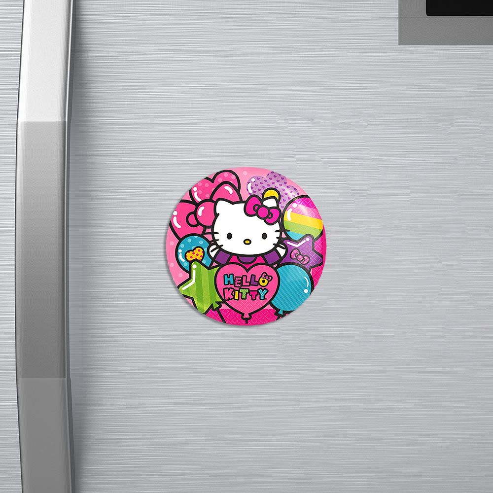 مگنت هلو کیتی Hello Kitty خندالو با روکش سلفون مات مخملی ضدخش و قطعه پشتی فلزی تولید شده است که آهنربای اتمی بکار برده شده در محصول، بصورت مخفی تعبیه شده ودیده نمی شود. ضمن اینکه گیرایی بسیار بالایی داشته و به هیچ عنوان از روی یخچال نمی افتد.