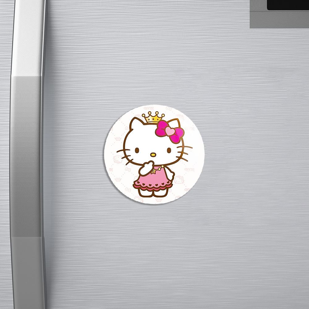 مگنت هلو کیتی Hello Kitty خندالو با روکش سلفون مات مخملی ضدخش و قطعه پشتی فلزی تولید شده است که آهنربای اتمی بکار برده شده در محصول، بصورت مخفی تعبیه شده ودیده نمی شود. ضمن اینکه گیرایی بسیار بالایی داشته و به هیچ عنوان از روی یخچال نمی افتد.