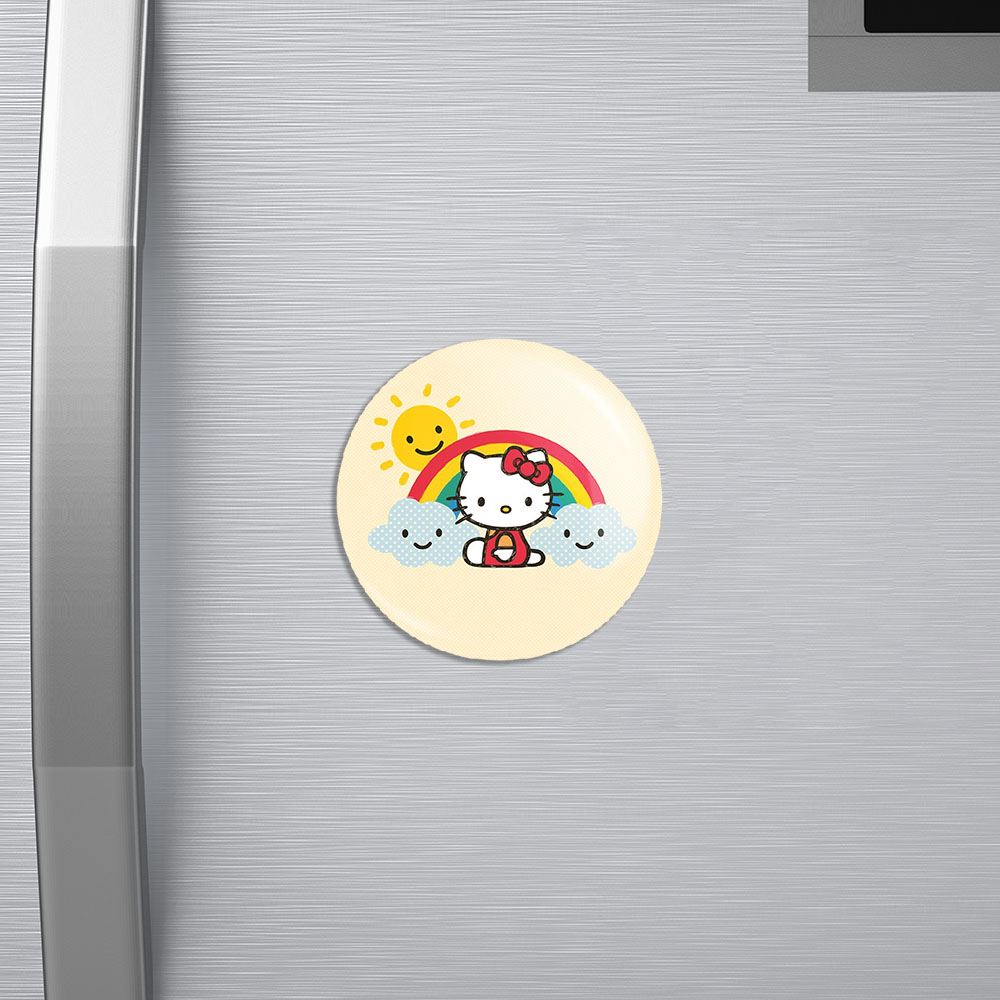 مگنت هلو کیتی Hello Kitty خندالو با روکش سلفون مات مخملی ضدخش و قطعه پشتی فلزی تولید شده است که آهنربای اتمی بکار برده شده در محصول، بصورت مخفی تعبیه شده ودیده نمی شود. ضمن اینکه گیرایی بسیار بالایی داشته و به هیچ عنوان از روی یخچال نمی افتد.