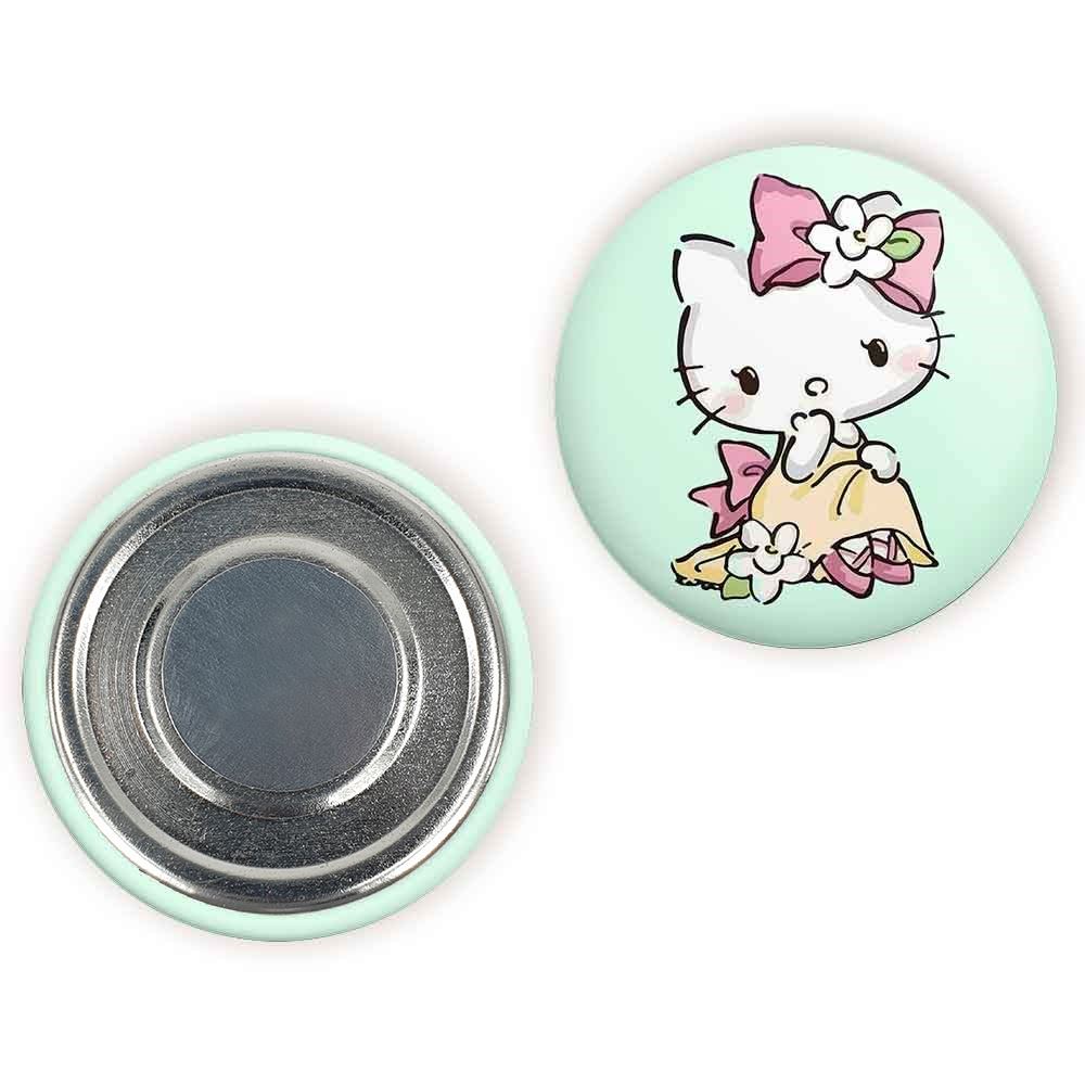 مگنت هلو کیتی Hello Kitty خندالو با روکش سلفون مات مخملی ضدخش و قطعه پشتی فلزی تولید شده است که آهنربای اتمی بکار برده شده در محصول، بصورت مخفی تعبیه شده ودیده نمی شود. ضمن اینکه گیرایی بسیار بالایی داشته و به هیچ عنوان از روی یخچال نمی افتد.
