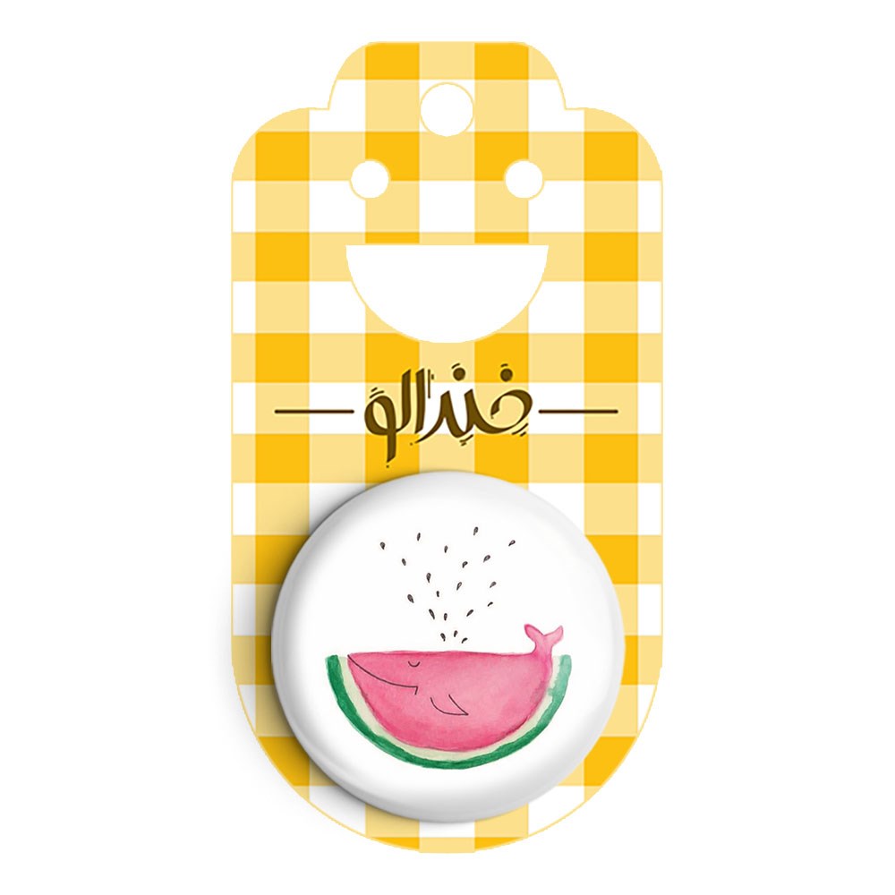 مگنت هندوانه خندالو با روکش سلفون مات مخملی ضدخش و قطعه پشتی فلزی تولید شده است که آهنربای اتمی بکار برده شده در محصول، بصورت مخفی تعبیه شده ودیده نمی شود. ضمن اینکه گیرایی بسیار بالایی داشته و به هیچ عنوان از روی یخچال نمی افتد.
