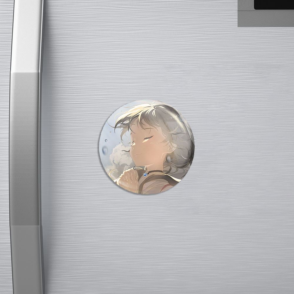 مگنت هینا انیمه تغییر آب و هوا با تو خندالو با روکش سلفون مات مخملی ضدخش و قطعه پشتی فلزی تولید شده است که آهنربای اتمی بکار برده شده در محصول، بصورت مخفی تعبیه شده ودیده نمی شود. ضمن اینکه گیرایی بسیار بالایی داشته و به هیچ عنوان از روی یخچال نمی افتد.
