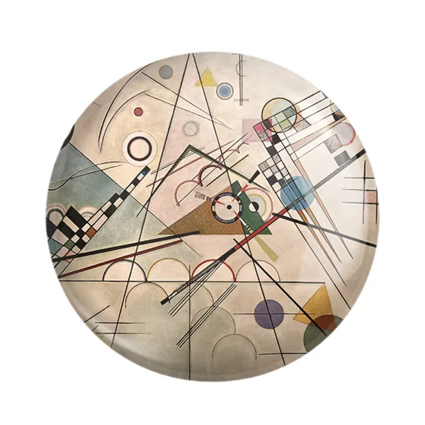 مگنت واسیلی کاندینسکی خندالو با روکش سلفون مات مخملی ضدخش و قطعه پشتی فلزی تولید شده است که آهنربای اتمی بکار برده شده در محصول، بصورت مخفی تعبیه شده ودیده نمی شود. ضمن اینکه گیرایی بسیار بالایی داشته و به هیچ عنوان از روی یخچال نمی افتد.