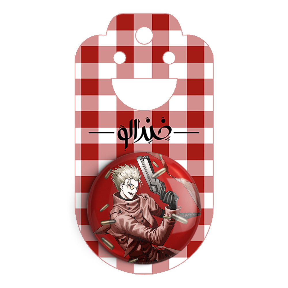 مگنت وش انیمه تریگان (Trigun) خندالو با روکش سلفون مات مخملی ضدخش و قطعه پشتی فلزی تولید شده است که آهنربای اتمی بکار برده شده در محصول، بصورت مخفی تعبیه شده ودیده نمی شود. ضمن اینکه گیرایی بسیار بالایی داشته و به هیچ عنوان از روی یخچال نمی افتد.