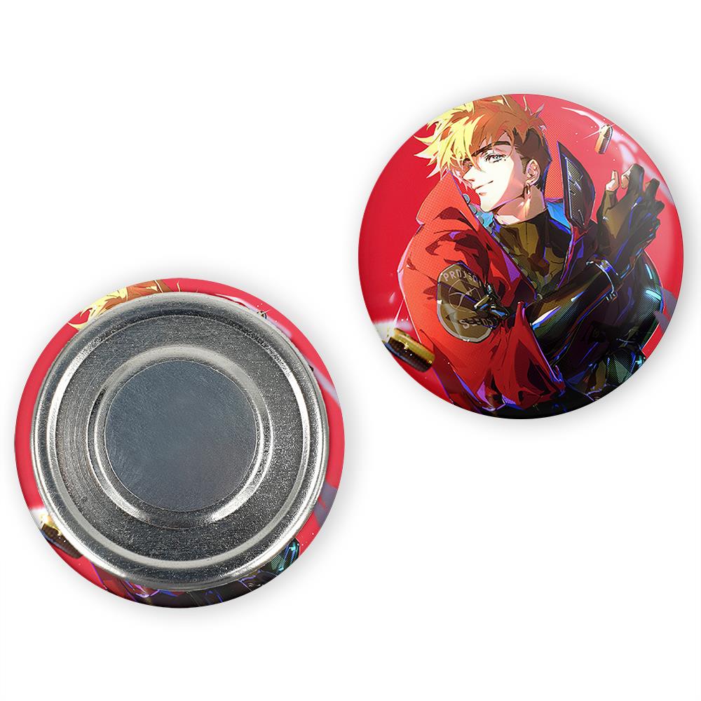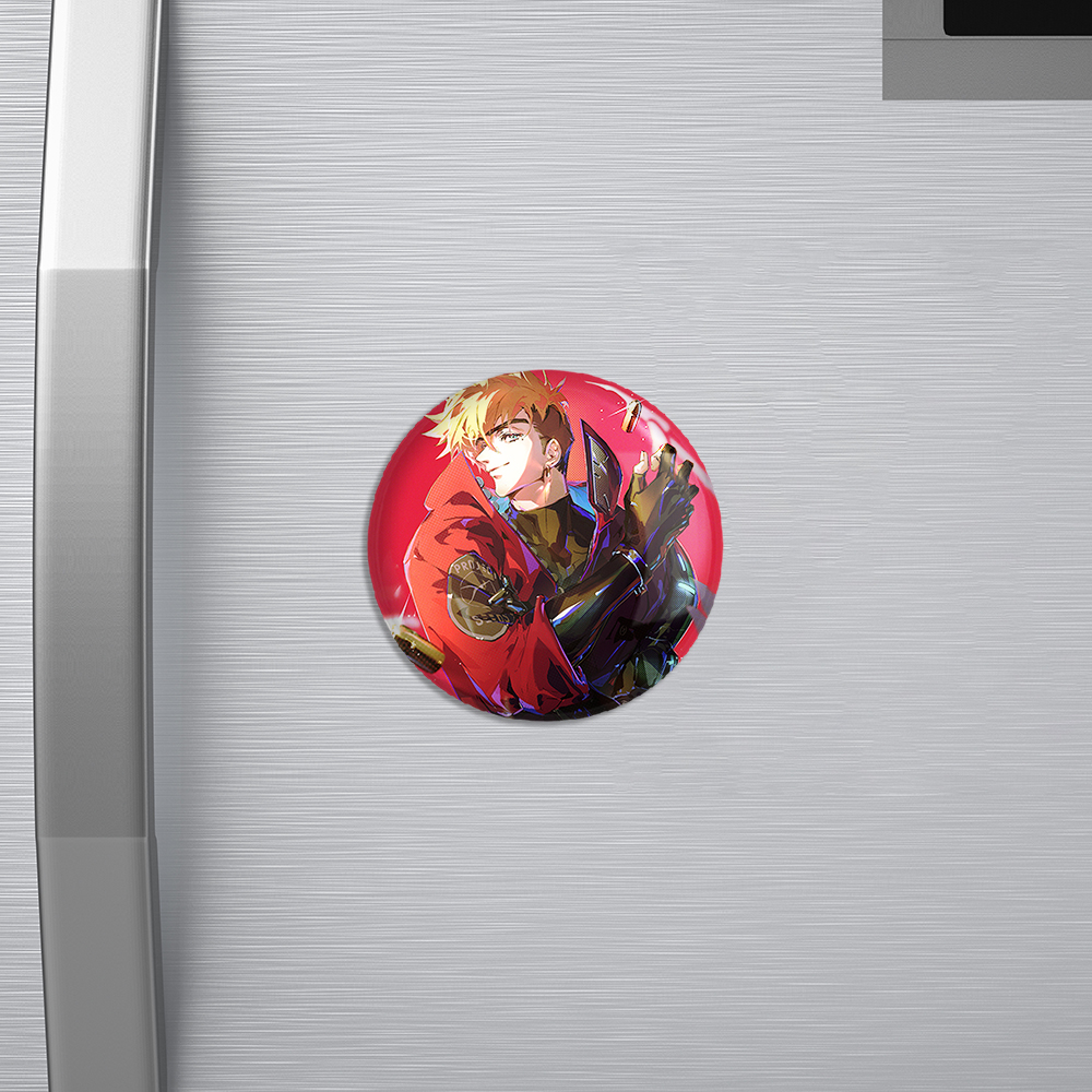 مگنت وش انیمه تریگان (Trigun) خندالو با روکش سلفون مات مخملی ضدخش و قطعه پشتی فلزی تولید شده است که آهنربای اتمی بکار برده شده در محصول، بصورت مخفی تعبیه شده ودیده نمی شود. ضمن اینکه گیرایی بسیار بالایی داشته و به هیچ عنوان از روی یخچال نمی افتد.