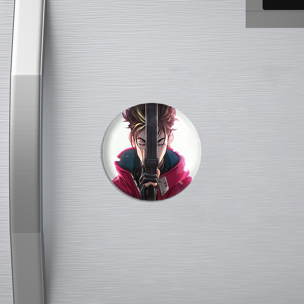 مگنت وش انیمه تریگان (Trigun) خندالو با روکش سلفون مات مخملی ضدخش و قطعه پشتی فلزی تولید شده است که آهنربای اتمی بکار برده شده در محصول، بصورت مخفی تعبیه شده ودیده نمی شود. ضمن اینکه گیرایی بسیار بالایی داشته و به هیچ عنوان از روی یخچال نمی افتد.