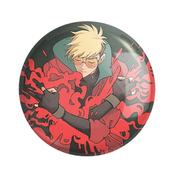مگنت وش انیمه تریگان (Trigun) خندالو با روکش سلفون مات مخملی ضدخش و قطعه پشتی فلزی تولید شده است که آهنربای اتمی بکار برده شده در محصول، بصورت مخفی تعبیه شده ودیده نمی شود. ضمن اینکه گیرایی بسیار بالایی داشته و به هیچ عنوان از روی یخچال نمی افتد.