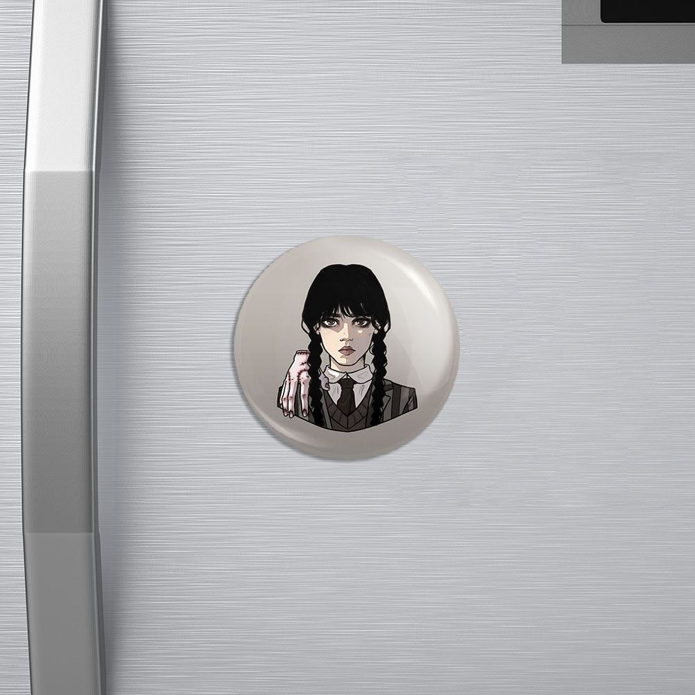 مگنت ونزدی Wednesday خندالو با روکش سلفون مات مخملی ضدخش و قطعه پشتی فلزی تولید شده است که آهنربای اتمی بکار برده شده در محصول، بصورت مخفی تعبیه شده ودیده نمی شود. ضمن اینکه گیرایی بسیار بالایی داشته و به هیچ عنوان از روی یخچال نمی افتد.