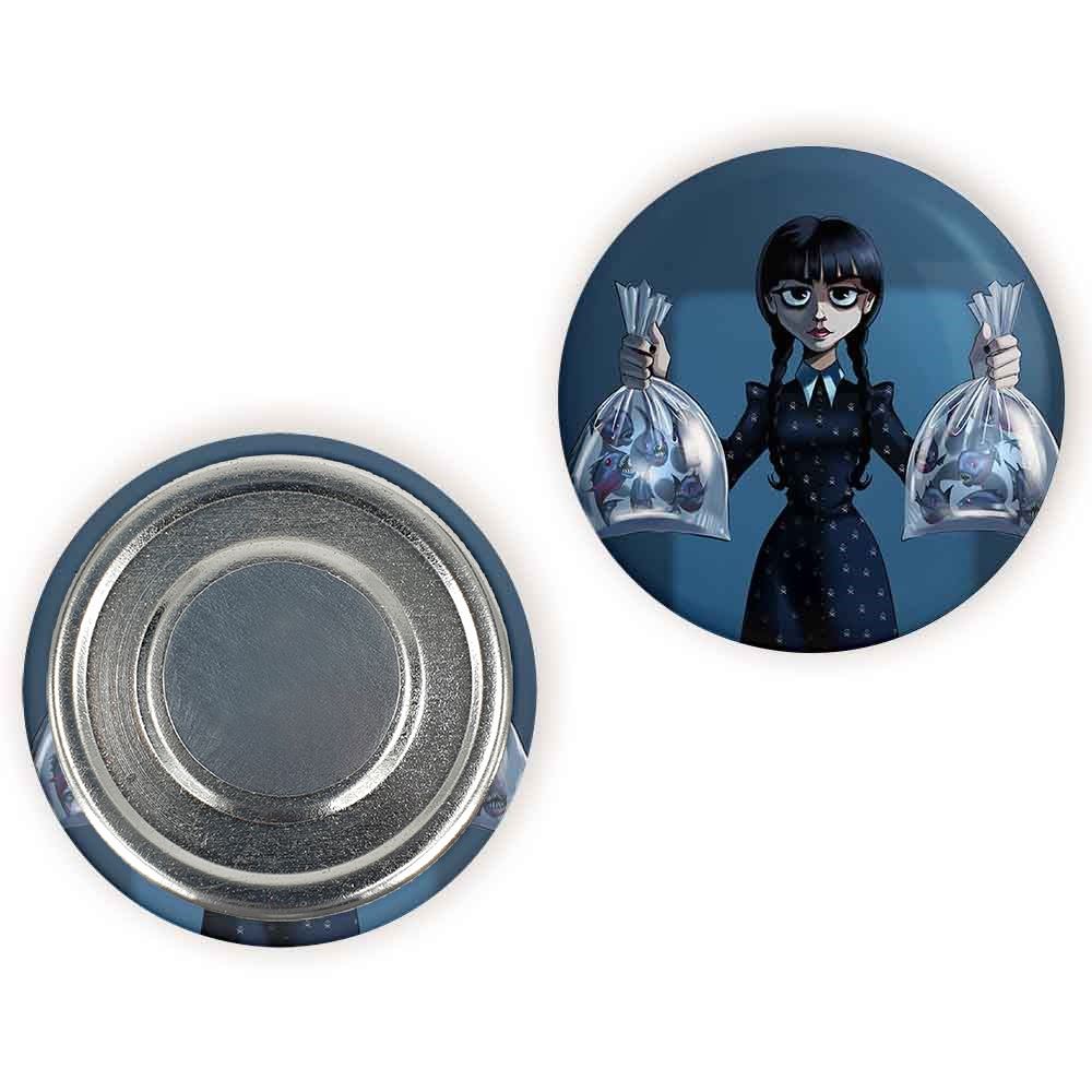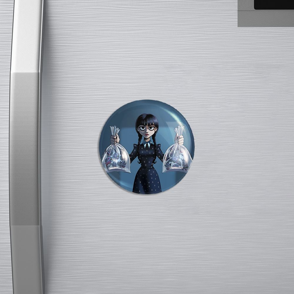 مگنت ونزدی Wednesday خندالو با روکش سلفون مات مخملی ضدخش و قطعه پشتی فلزی تولید شده است که آهنربای اتمی بکار برده شده در محصول، بصورت مخفی تعبیه شده ودیده نمی شود. ضمن اینکه گیرایی بسیار بالایی داشته و به هیچ عنوان از روی یخچال نمی افتد.