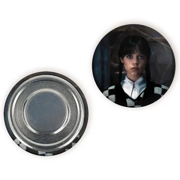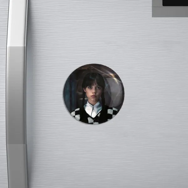مگنت ونزدی Wednesday خندالو با روکش سلفون مات مخملی ضدخش و قطعه پشتی فلزی تولید شده است که آهنربای اتمی بکار برده شده در محصول، بصورت مخفی تعبیه شده ودیده نمی شود. ضمن اینکه گیرایی بسیار بالایی داشته و به هیچ عنوان از روی یخچال نمی افتد.
