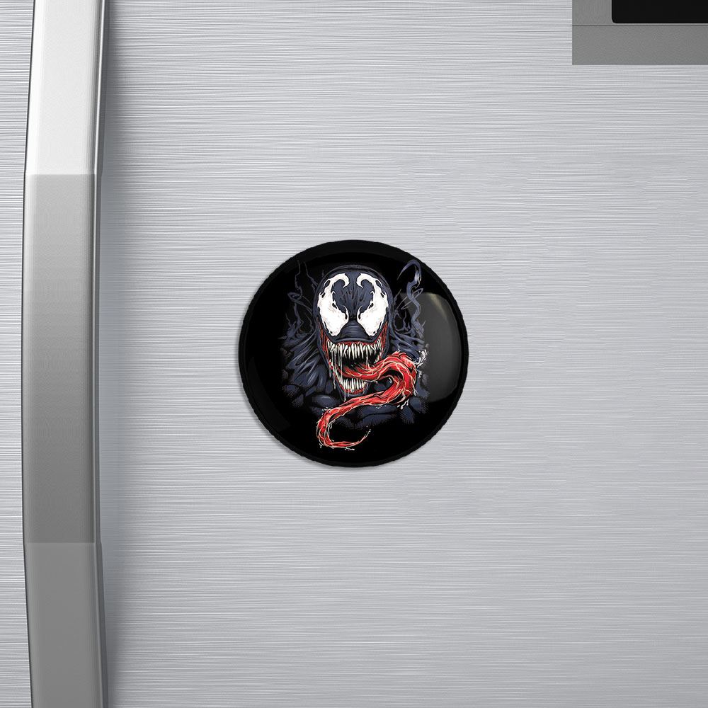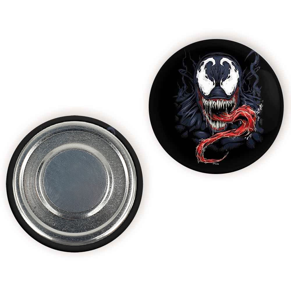 مگنت ونوم Venom خندالو با روکش سلفون مات مخملی ضدخش و قطعه پشتی فلزی تولید شده است که آهنربای اتمی بکار برده شده در محصول، بصورت مخفی تعبیه شده ودیده نمی شود. ضمن اینکه گیرایی بسیار بالایی داشته و به هیچ عنوان از روی یخچال نمی افتد.