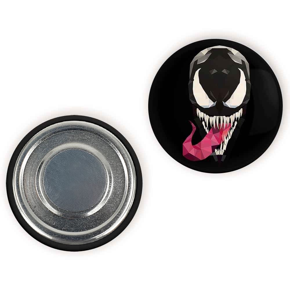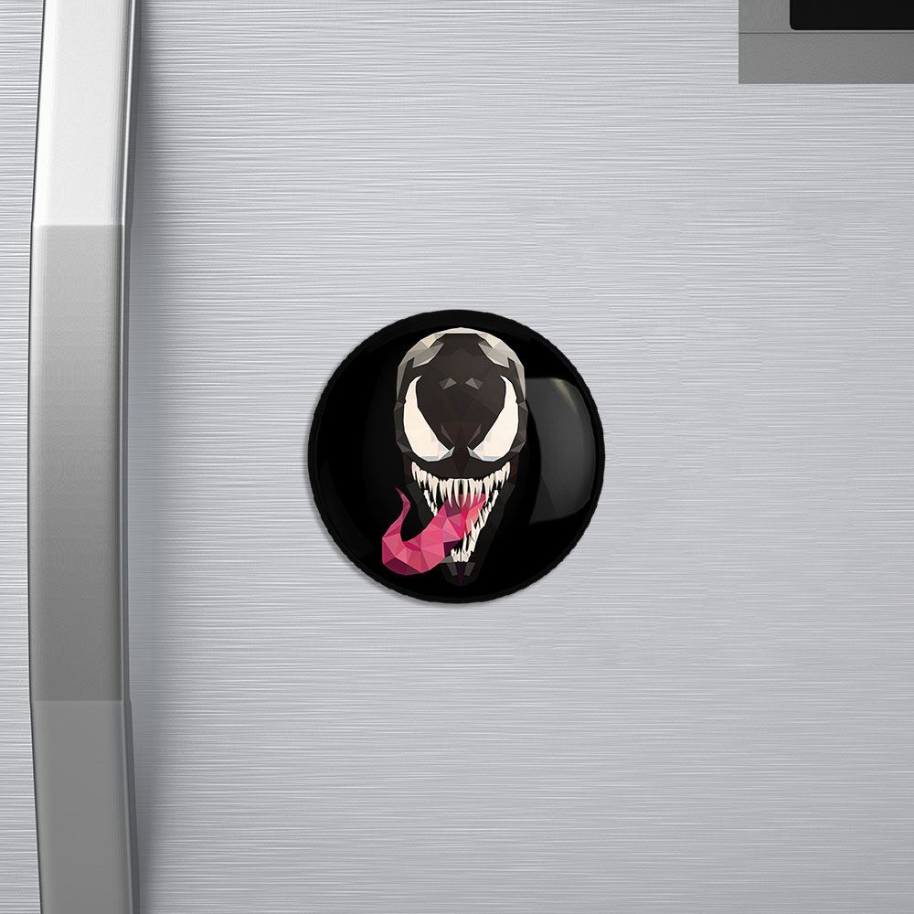 مگنت ونوم Venom خندالو با روکش سلفون مات مخملی ضدخش و قطعه پشتی فلزی تولید شده است که آهنربای اتمی بکار برده شده در محصول، بصورت مخفی تعبیه شده ودیده نمی شود. ضمن اینکه گیرایی بسیار بالایی داشته و به هیچ عنوان از روی یخچال نمی افتد.