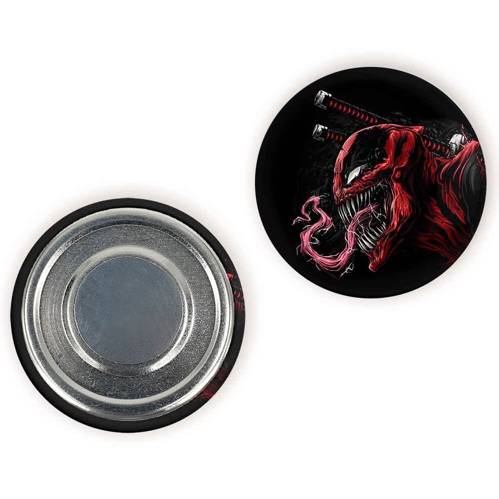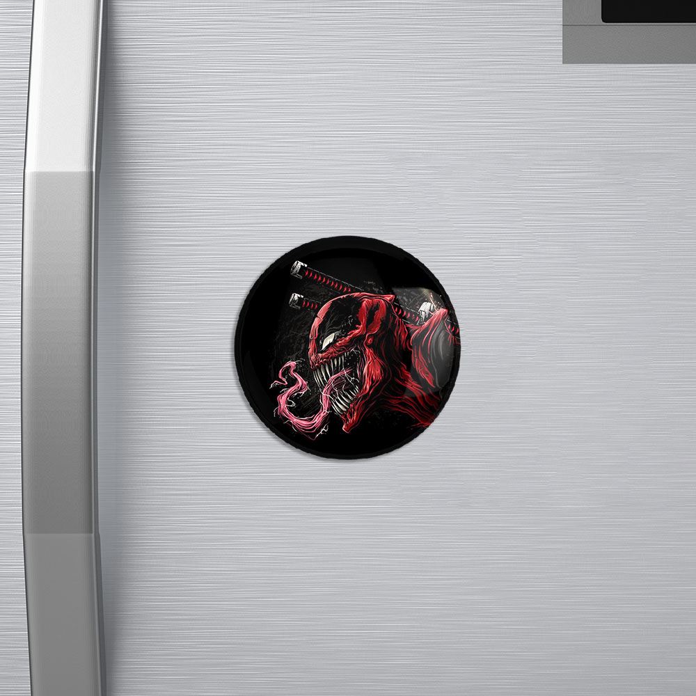 مگنت ونوم Venom خندالو با روکش سلفون مات مخملی ضدخش و قطعه پشتی فلزی تولید شده است که آهنربای اتمی بکار برده شده در محصول، بصورت مخفی تعبیه شده ودیده نمی شود. ضمن اینکه گیرایی بسیار بالایی داشته و به هیچ عنوان از روی یخچال نمی افتد.