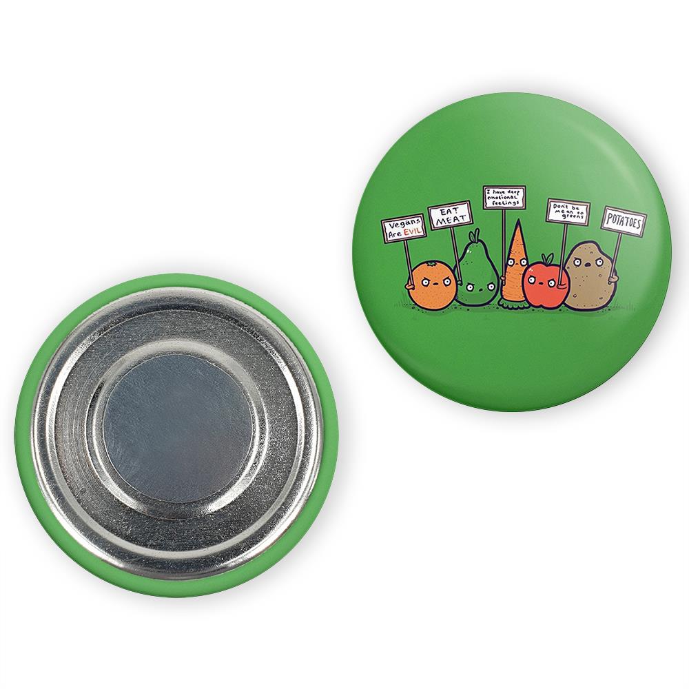 مگنت وگن Vegan خندالو با روکش سلفون مات مخملی ضدخش و قطعه پشتی فلزی تولید شده است که آهنربای اتمی بکار برده شده در محصول، بصورت مخفی تعبیه شده ودیده نمی شود. ضمن اینکه گیرایی بسیار بالایی داشته و به هیچ عنوان از روی یخچال نمی افتد.