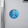 مگنت وگن Vegan خندالو با روکش سلفون مات مخملی ضدخش و قطعه پشتی فلزی تولید شده است که آهنربای اتمی بکار برده شده در محصول، بصورت مخفی تعبیه شده ودیده نمی شود. ضمن اینکه گیرایی بسیار بالایی داشته و به هیچ عنوان از روی یخچال نمی افتد.