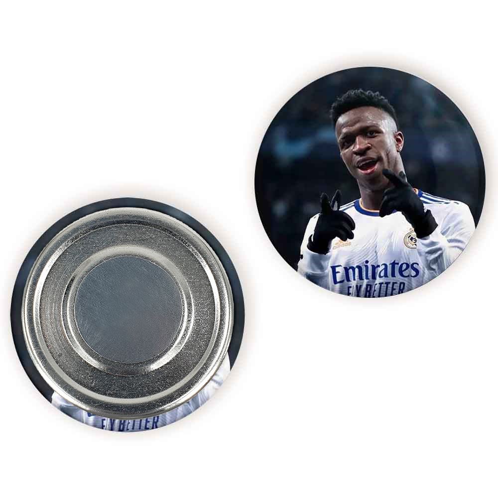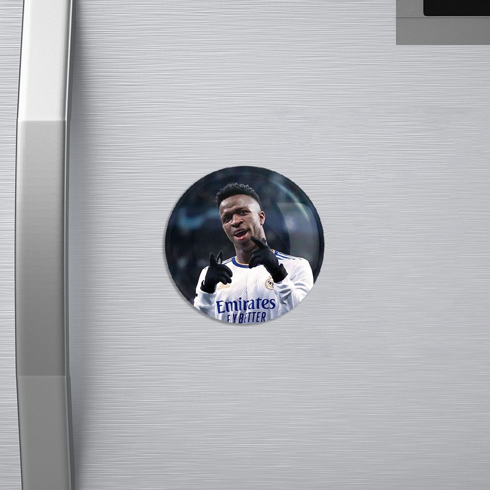 مگنت وینیسیوس جونیور Vini Jr خندالو با روکش سلفون مات مخملی ضدخش و قطعه پشتی فلزی تولید شده است که آهنربای اتمی بکار برده شده در محصول، بصورت مخفی تعبیه شده ودیده نمی شود. ضمن اینکه گیرایی بسیار بالایی داشته و به هیچ عنوان از روی یخچال نمی افتد.