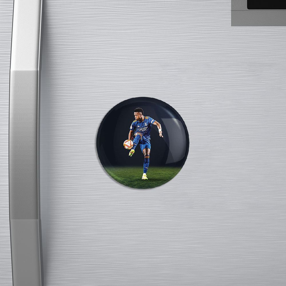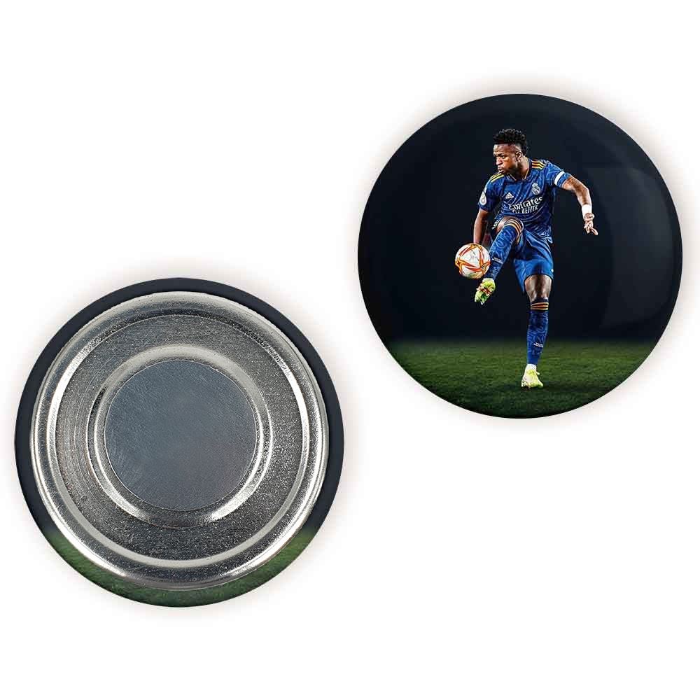 مگنت وینیسیوس جونیور Vini Jr خندالو با روکش سلفون مات مخملی ضدخش و قطعه پشتی فلزی تولید شده است که آهنربای اتمی بکار برده شده در محصول، بصورت مخفی تعبیه شده ودیده نمی شود. ضمن اینکه گیرایی بسیار بالایی داشته و به هیچ عنوان از روی یخچال نمی افتد.