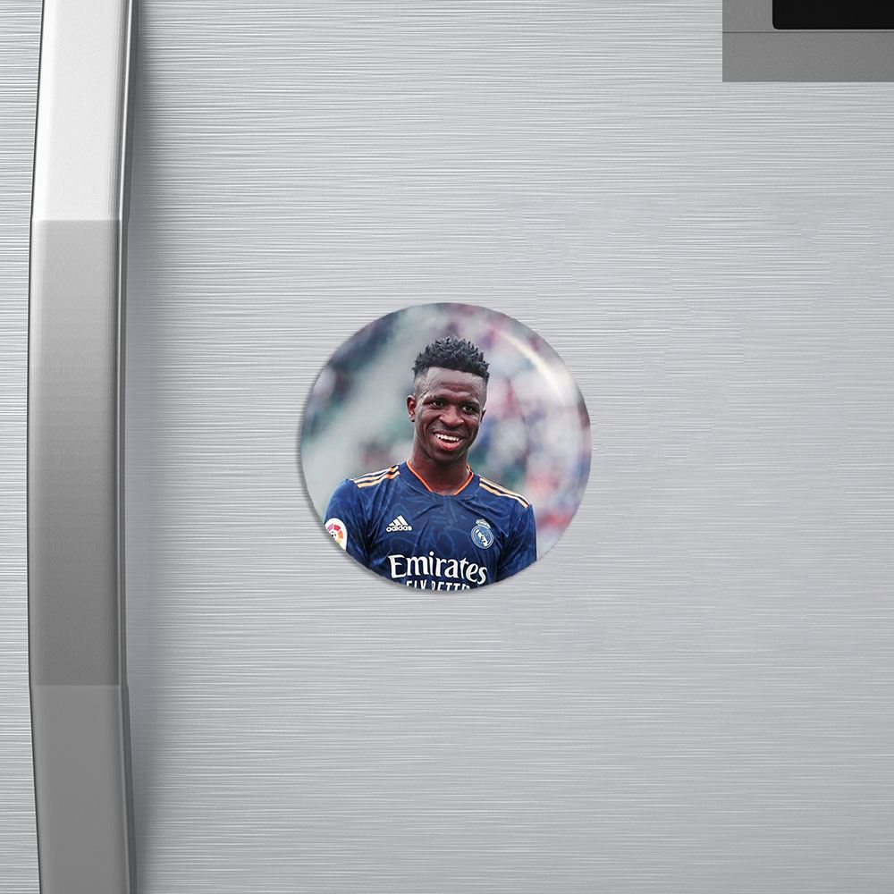 مگنت وینیسیوس جونیور Vini Jr خندالو با روکش سلفون مات مخملی ضدخش و قطعه پشتی فلزی تولید شده است که آهنربای اتمی بکار برده شده در محصول، بصورت مخفی تعبیه شده ودیده نمی شود. ضمن اینکه گیرایی بسیار بالایی داشته و به هیچ عنوان از روی یخچال نمی افتد.