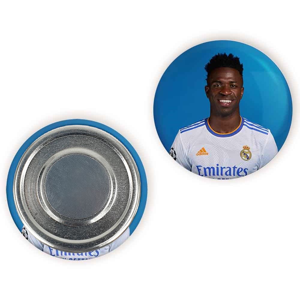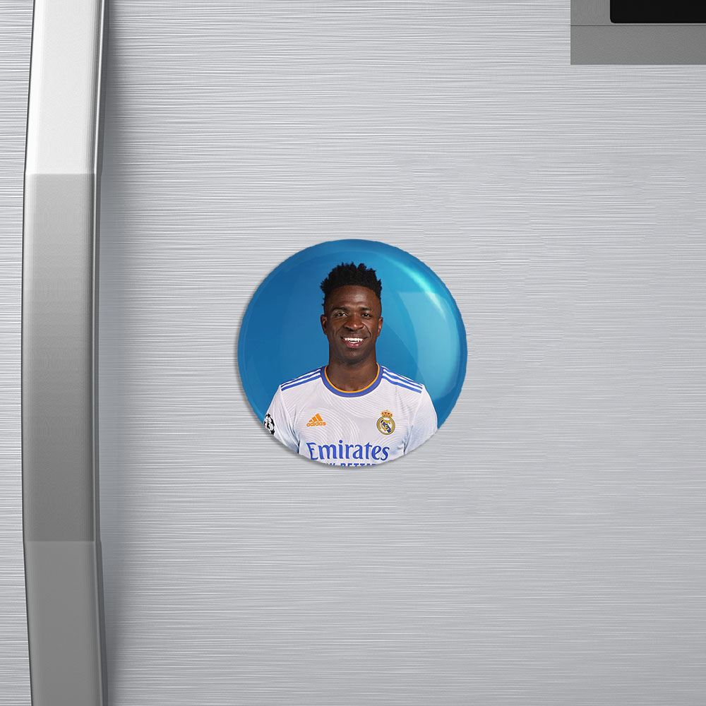 مگنت وینیسیوس جونیور Vini Jr خندالو با روکش سلفون مات مخملی ضدخش و قطعه پشتی فلزی تولید شده است که آهنربای اتمی بکار برده شده در محصول، بصورت مخفی تعبیه شده ودیده نمی شود. ضمن اینکه گیرایی بسیار بالایی داشته و به هیچ عنوان از روی یخچال نمی افتد.