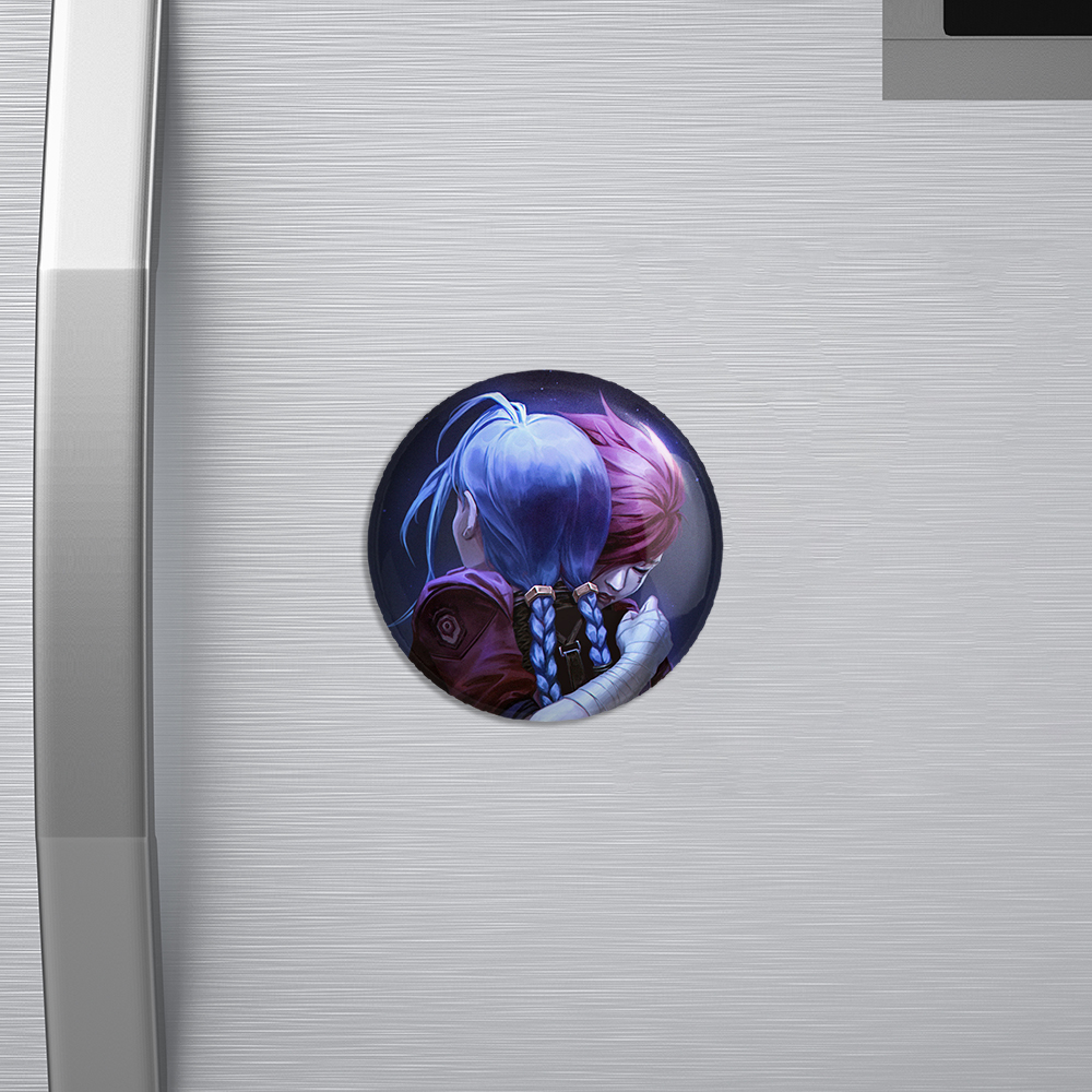 مگنت وی و جینکس آرکین (Arcane) خندالو با روکش سلفون مات مخملی ضدخش و قطعه پشتی فلزی تولید شده است که آهنربای اتمی بکار برده شده در محصول، بصورت مخفی تعبیه شده ودیده نمی شود. ضمن اینکه گیرایی بسیار بالایی داشته و به هیچ عنوان از روی یخچال نمی افتد.
