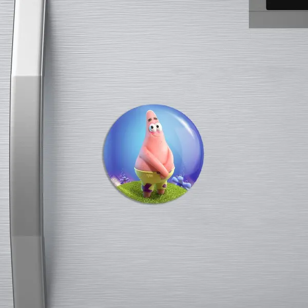 مگنت پاتریک باب اسفنجی خندالو با روکش سلفون مات مخملی ضدخش و قطعه پشتی فلزی تولید شده است که آهنربای اتمی بکار برده شده در محصول، بصورت مخفی تعبیه شده ودیده نمی شود. ضمن اینکه گیرایی بسیار بالایی داشته و به هیچ عنوان از روی یخچال نمی افتد.