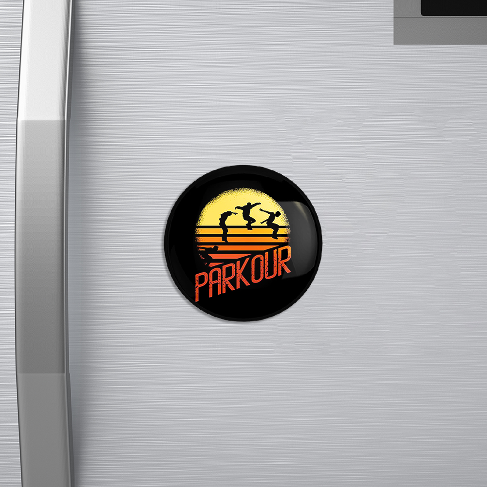 مگنت پارکور خندالو با روکش سلفون مات مخملی ضدخش و قطعه پشتی فلزی تولید شده است که آهنربای اتمی بکار برده شده در محصول، بصورت مخفی تعبیه شده ودیده نمی شود. ضمن اینکه گیرایی بسیار بالایی داشته و به هیچ عنوان از روی یخچال نمی افتد.