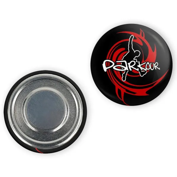 مگنت پارکور خندالو با روکش سلفون مات مخملی ضدخش و قطعه پشتی فلزی تولید شده است که آهنربای اتمی بکار برده شده در محصول، بصورت مخفی تعبیه شده ودیده نمی شود. ضمن اینکه گیرایی بسیار بالایی داشته و به هیچ عنوان از روی یخچال نمی افتد.
