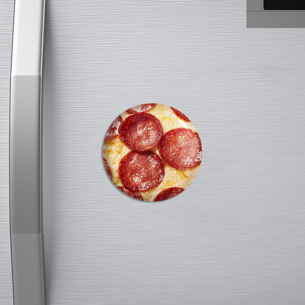 مگنت پترن خوراکی خندالو با روکش سلفون مات مخملی ضدخش و قطعه پشتی فلزی تولید شده است که آهنربای اتمی بکار برده شده در محصول، بصورت مخفی تعبیه شده ودیده نمی شود. ضمن اینکه گیرایی بسیار بالایی داشته و به هیچ عنوان از روی یخچال نمی افتد.