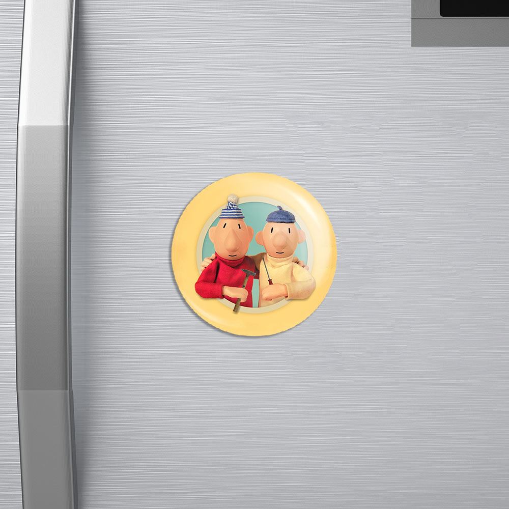مگنت پت و مت خندالو با روکش سلفون مات مخملی ضدخش و قطعه پشتی فلزی تولید شده است که آهنربای اتمی بکار برده شده در محصول، بصورت مخفی تعبیه شده ودیده نمی شود. ضمن اینکه گیرایی بسیار بالایی داشته و به هیچ عنوان از روی یخچال نمی افتد.