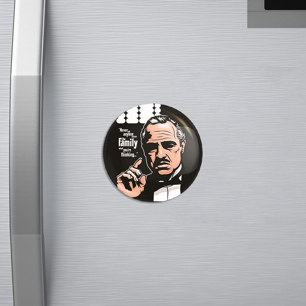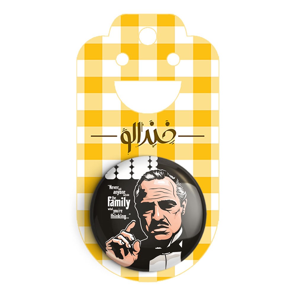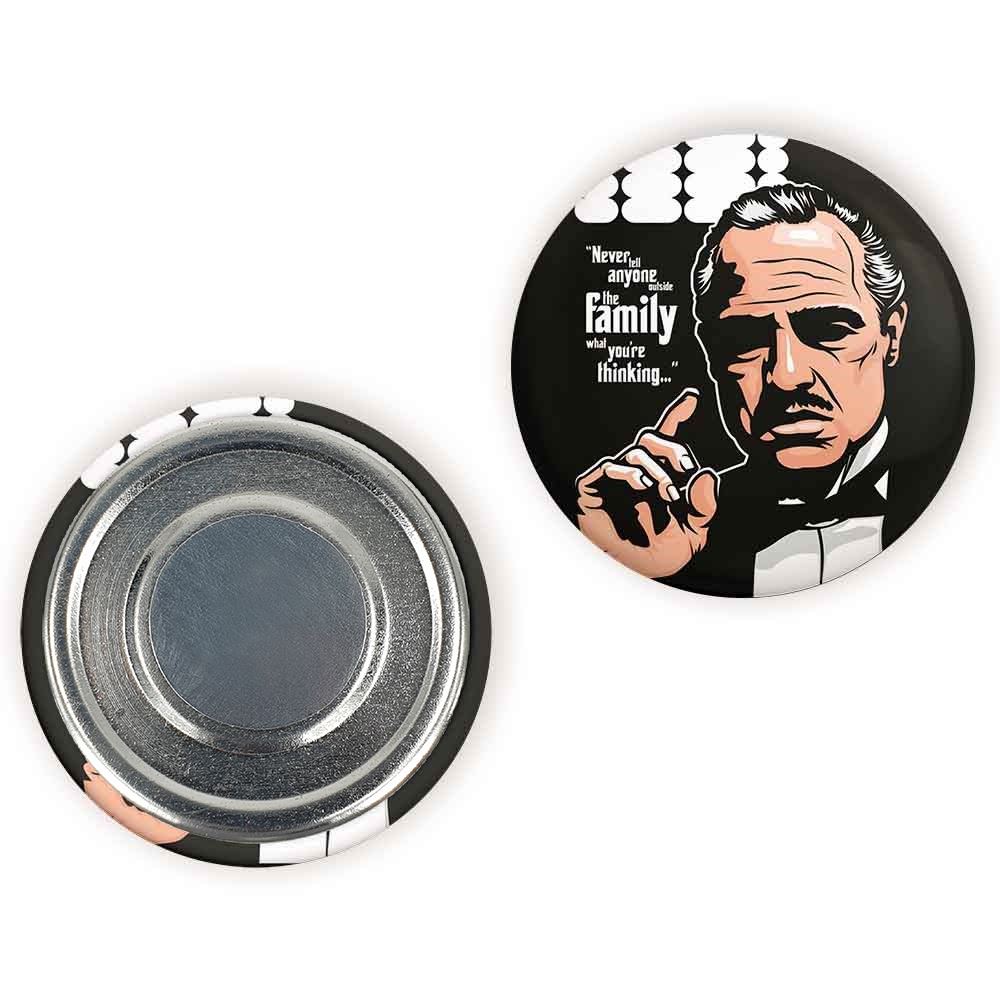 مگنت پدرخوانده The Godfather خندالو با روکش سلفون مات مخملی ضدخش و قطعه پشتی فلزی تولید شده است که آهنربای اتمی بکار برده شده در محصول، بصورت مخفی تعبیه شده ودیده نمی شود. ضمن اینکه گیرایی بسیار بالایی داشته و به هیچ عنوان از روی یخچال نمی افتد.