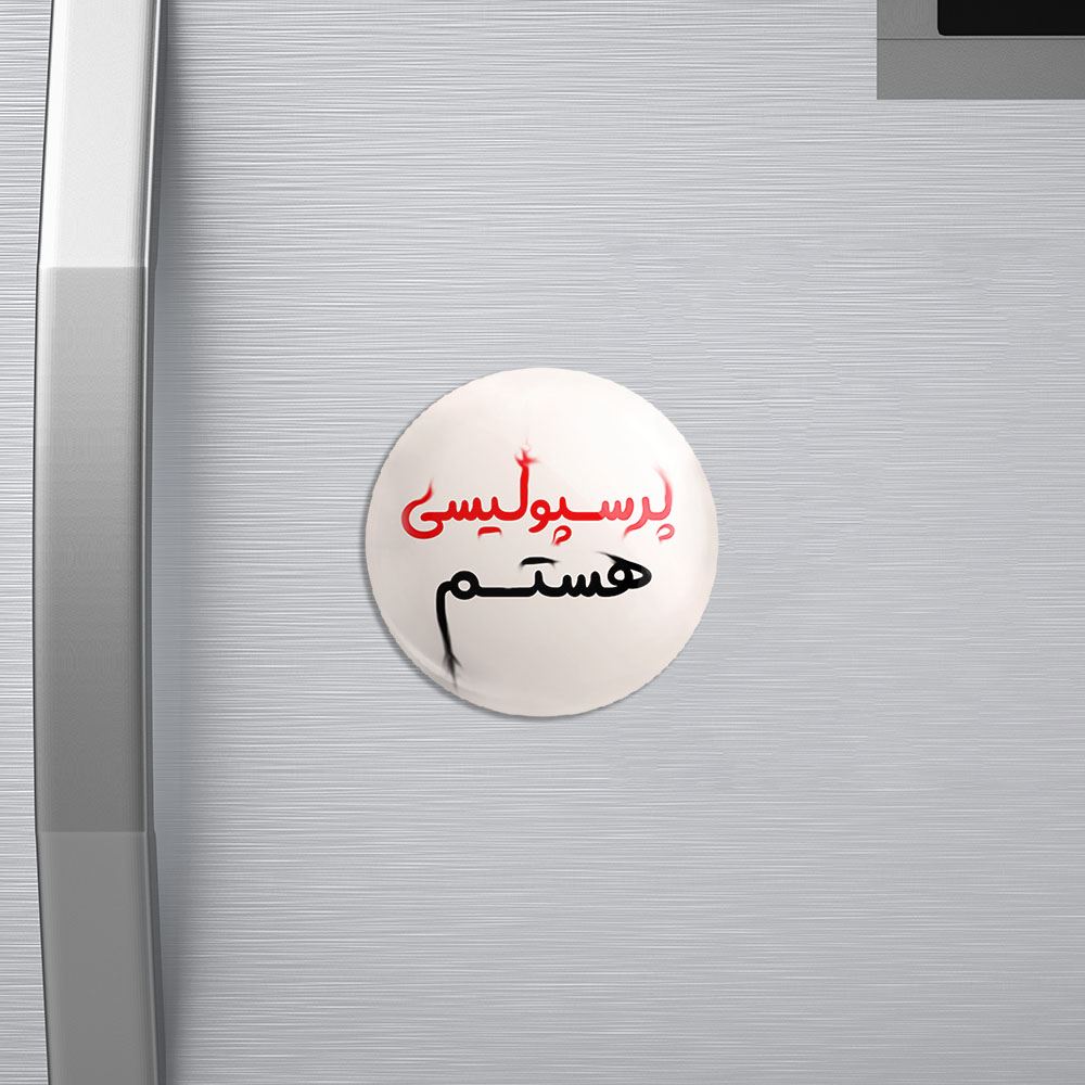 مگنت پرسپولیس خندالو با روکش سلفون مات مخملی ضدخش و قطعه پشتی فلزی تولید شده است که آهنربای اتمی بکار برده شده در محصول، بصورت مخفی تعبیه شده ودیده نمی شود. ضمن اینکه گیرایی بسیار بالایی داشته و به هیچ عنوان از روی یخچال نمی افتد.