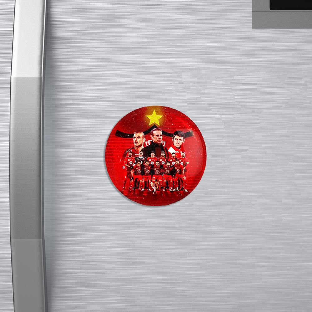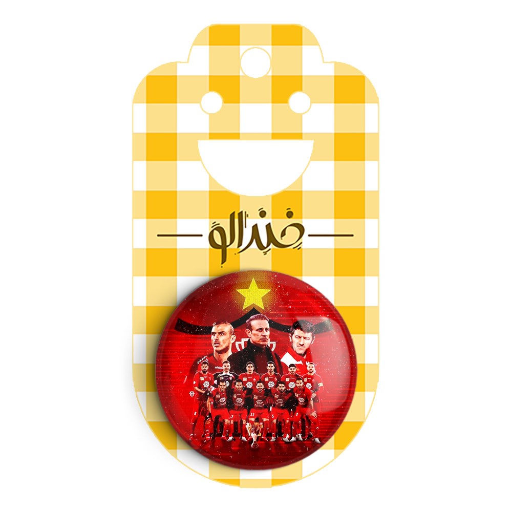 مگنت پرسپولیس خندالو با روکش سلفون مات مخملی ضدخش و قطعه پشتی فلزی تولید شده است که آهنربای اتمی بکار برده شده در محصول، بصورت مخفی تعبیه شده ودیده نمی شود. ضمن اینکه گیرایی بسیار بالایی داشته و به هیچ عنوان از روی یخچال نمی افتد.