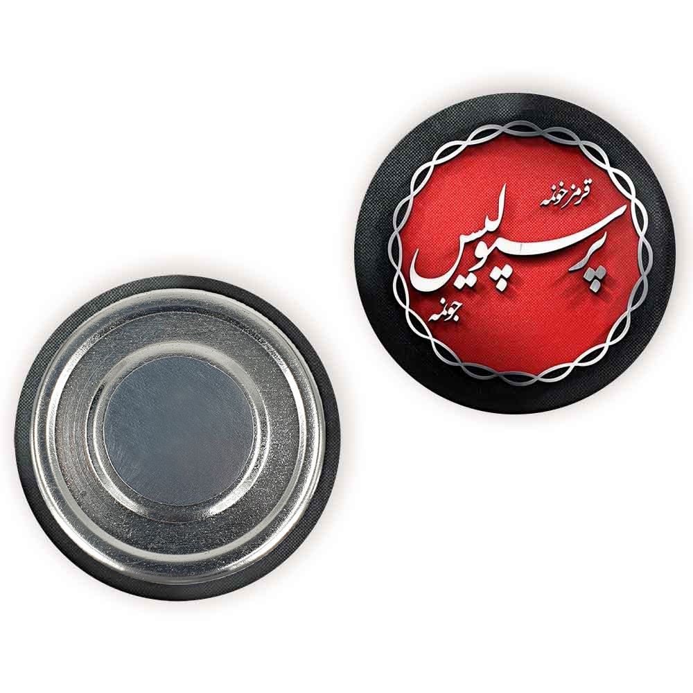 مگنت پرسپولیس خندالو با روکش سلفون مات مخملی ضدخش و قطعه پشتی فلزی تولید شده است که آهنربای اتمی بکار برده شده در محصول، بصورت مخفی تعبیه شده ودیده نمی شود. ضمن اینکه گیرایی بسیار بالایی داشته و به هیچ عنوان از روی یخچال نمی افتد.