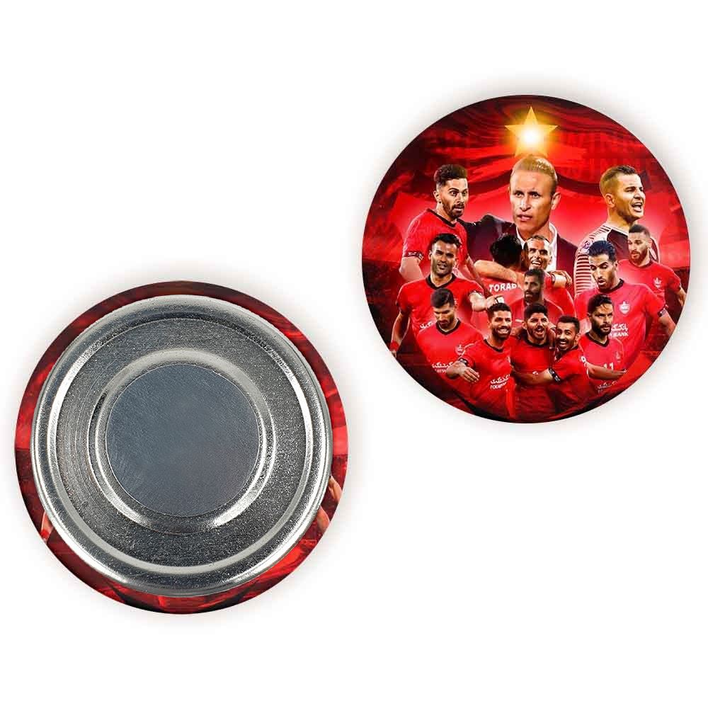 مگنت پرسپولیس خندالو با روکش سلفون مات مخملی ضدخش و قطعه پشتی فلزی تولید شده است که آهنربای اتمی بکار برده شده در محصول، بصورت مخفی تعبیه شده ودیده نمی شود. ضمن اینکه گیرایی بسیار بالایی داشته و به هیچ عنوان از روی یخچال نمی افتد.