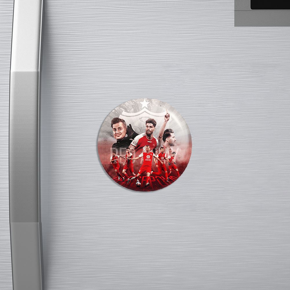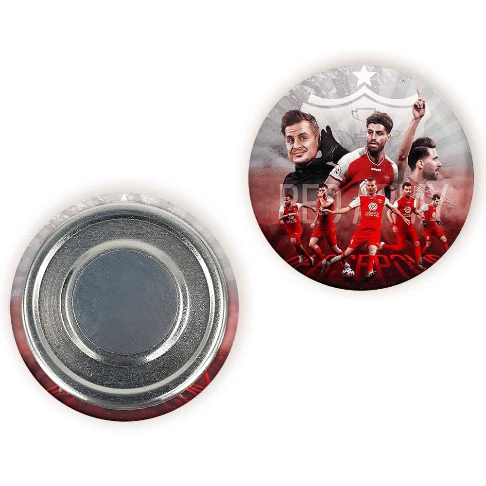 مگنت پرسپولیس خندالو با روکش سلفون مات مخملی ضدخش و قطعه پشتی فلزی تولید شده است که آهنربای اتمی بکار برده شده در محصول، بصورت مخفی تعبیه شده ودیده نمی شود. ضمن اینکه گیرایی بسیار بالایی داشته و به هیچ عنوان از روی یخچال نمی افتد.