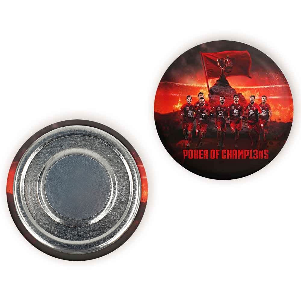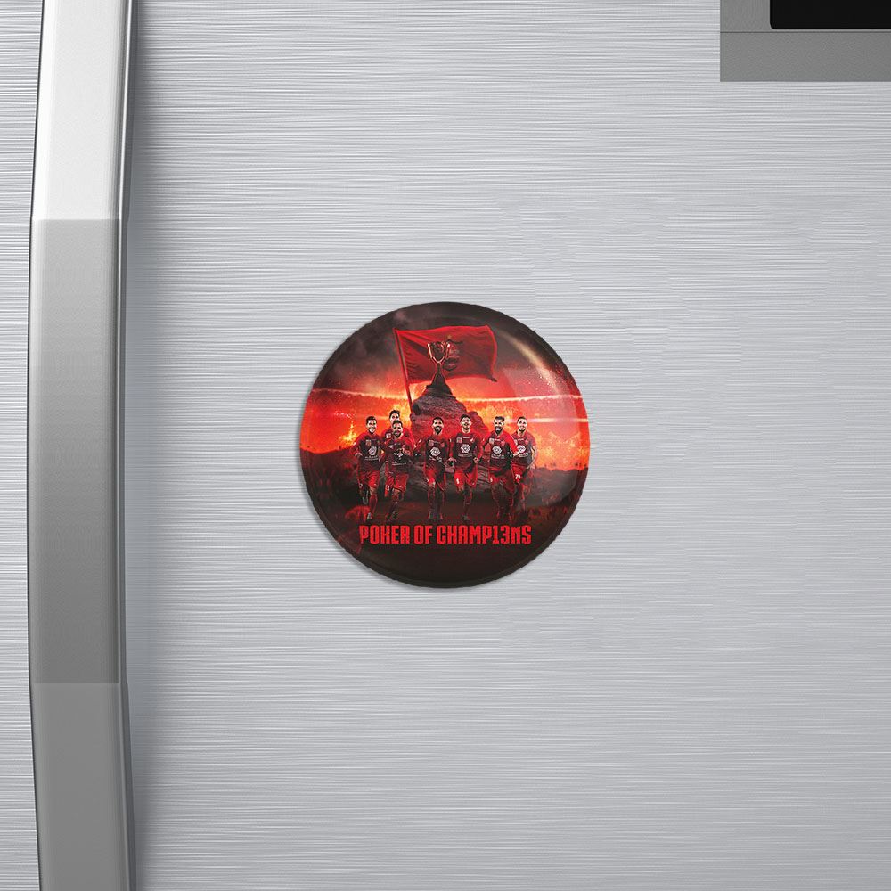 مگنت پرسپولیس خندالو با روکش سلفون مات مخملی ضدخش و قطعه پشتی فلزی تولید شده است که آهنربای اتمی بکار برده شده در محصول، بصورت مخفی تعبیه شده ودیده نمی شود. ضمن اینکه گیرایی بسیار بالایی داشته و به هیچ عنوان از روی یخچال نمی افتد.