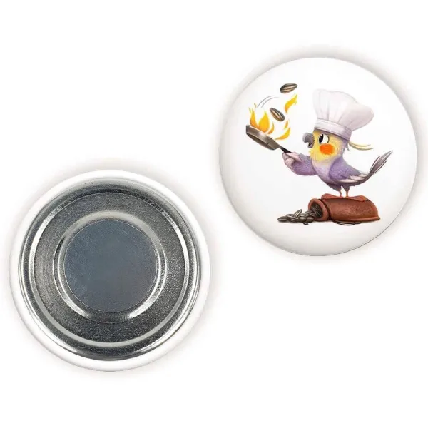 مگنت پرنده خندالو با روکش سلفون مات مخملی ضدخش و قطعه پشتی فلزی تولید شده است که آهنربای اتمی بکار برده شده در محصول، بصورت مخفی تعبیه شده ودیده نمی شود. ضمن اینکه گیرایی بسیار بالایی داشته و به هیچ عنوان از روی یخچال نمی افتد.