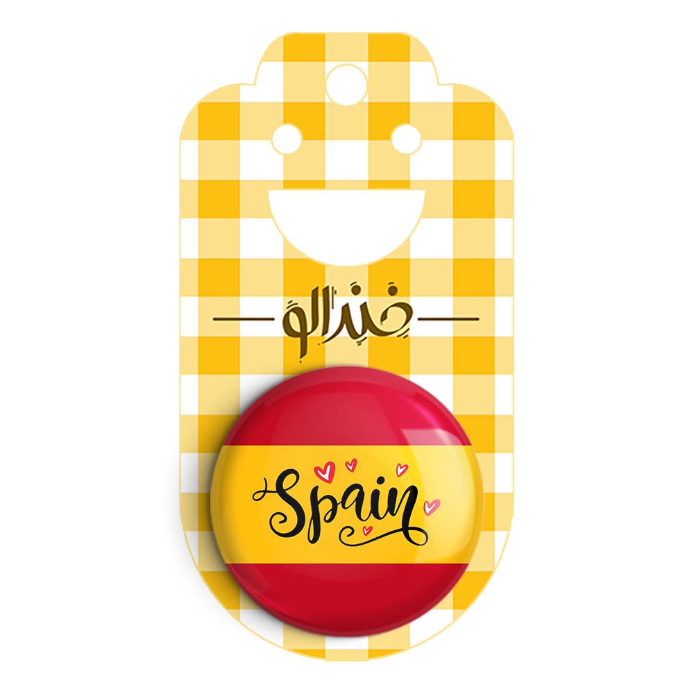 مگنت پرچم اسپانیا خندالو با روکش سلفون مات مخملی ضدخش و قطعه پشتی فلزی تولید شده است که آهنربای اتمی بکار برده شده در محصول، بصورت مخفی تعبیه شده ودیده نمی شود. ضمن اینکه گیرایی بسیار بالایی داشته و به هیچ عنوان از روی یخچال نمی افتد.