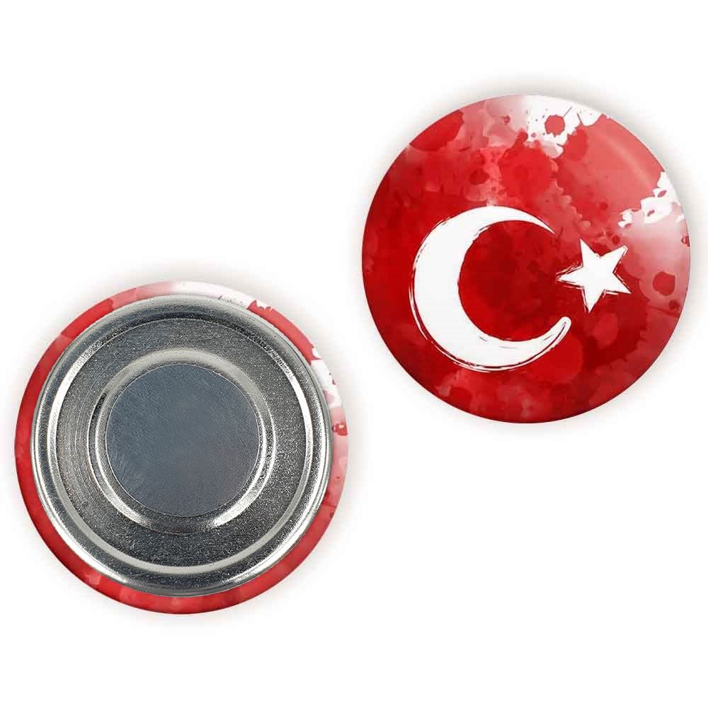 مگنت پرچم ترکیه خندالو با روکش سلفون مات مخملی ضدخش و قطعه پشتی فلزی تولید شده است که آهنربای اتمی بکار برده شده در محصول، بصورت مخفی تعبیه شده ودیده نمی شود. ضمن اینکه گیرایی بسیار بالایی داشته و به هیچ عنوان از روی یخچال نمی افتد.