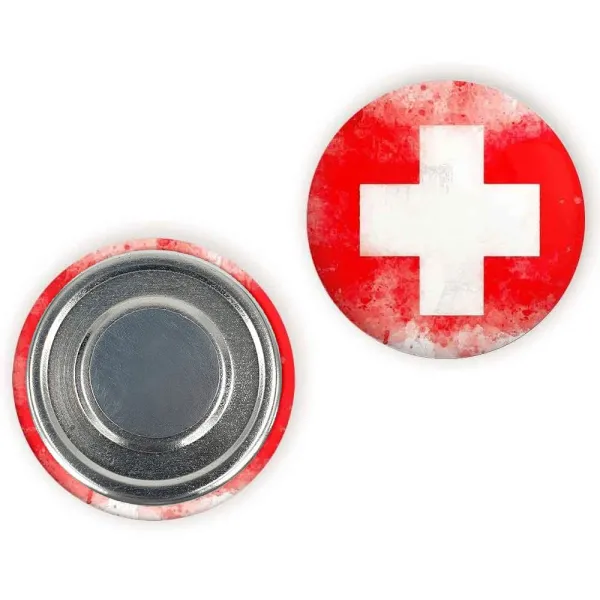 مگنت پرچم سوئیس خندالو با روکش سلفون مات مخملی ضدخش و قطعه پشتی فلزی تولید شده است که آهنربای اتمی بکار برده شده در محصول، بصورت مخفی تعبیه شده ودیده نمی شود. ضمن اینکه گیرایی بسیار بالایی داشته و به هیچ عنوان از روی یخچال نمی افتد.